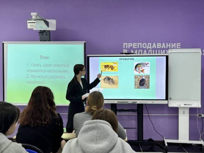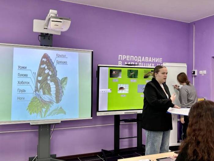 10 декабря 2025 г. участницы подготовили и провели фрагмент внеурочного занятия с использованием интерактивного оборудования по теме "Насекомые. Особенности внешнего вида, передвижения и питания".