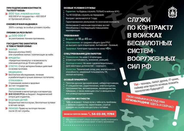 ❗️❗️❗️СЛУЖБА ПО КОНТРАКТУ В ВОЙСКАХ БЕСПИЛОТНЫХ СИСТЕМ ВООРУЖЕНИЯ: ОБ УСЛОВИЯХ, ГАРАНТИЯХ И ПЕРСПЕКТИВАХ! Контрактная служба – это возможность проявить свою гражданскую позицию, стать частью Вооруженных Сил Российской Федерации, которые ведут борьбу с нацизмом в рамках специальной военной операции.