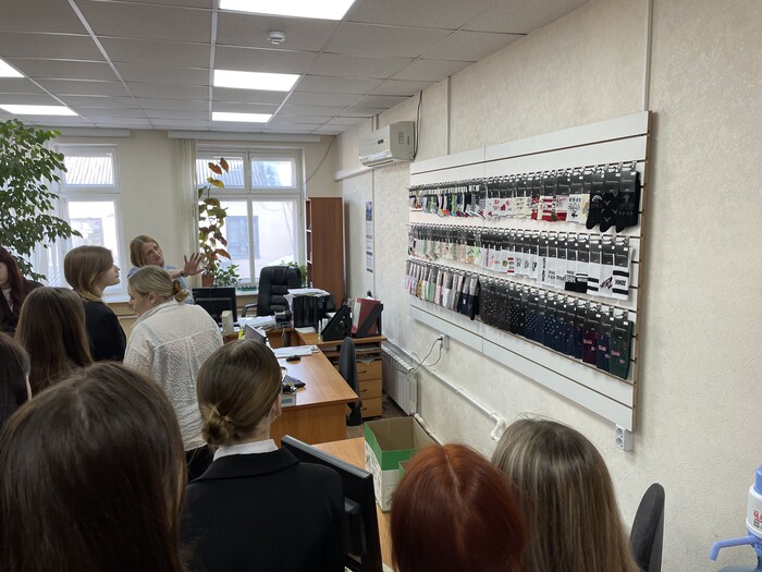 В ходе экскурсии был продемонстрирован полный цикл производства чулочно-носочной продукции (проектирование, внедрение, вязание, пошив, отделка, упаковка). Студенты узнали фабрику изнутри и познакомились с ее многолетней историей.