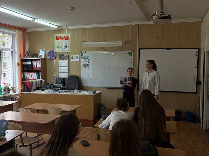 Перед началом осенних каникул преподавателям БПОУ ОО «Мезенский педагогический колледж» Щербаковой Евгении Викторовне и Грицай Наталье Петровне посчастливилось провести познавательную беседу о профессии учителя с учениками лицея № 21 имени генерала А.П. Ермолова г. Орла.