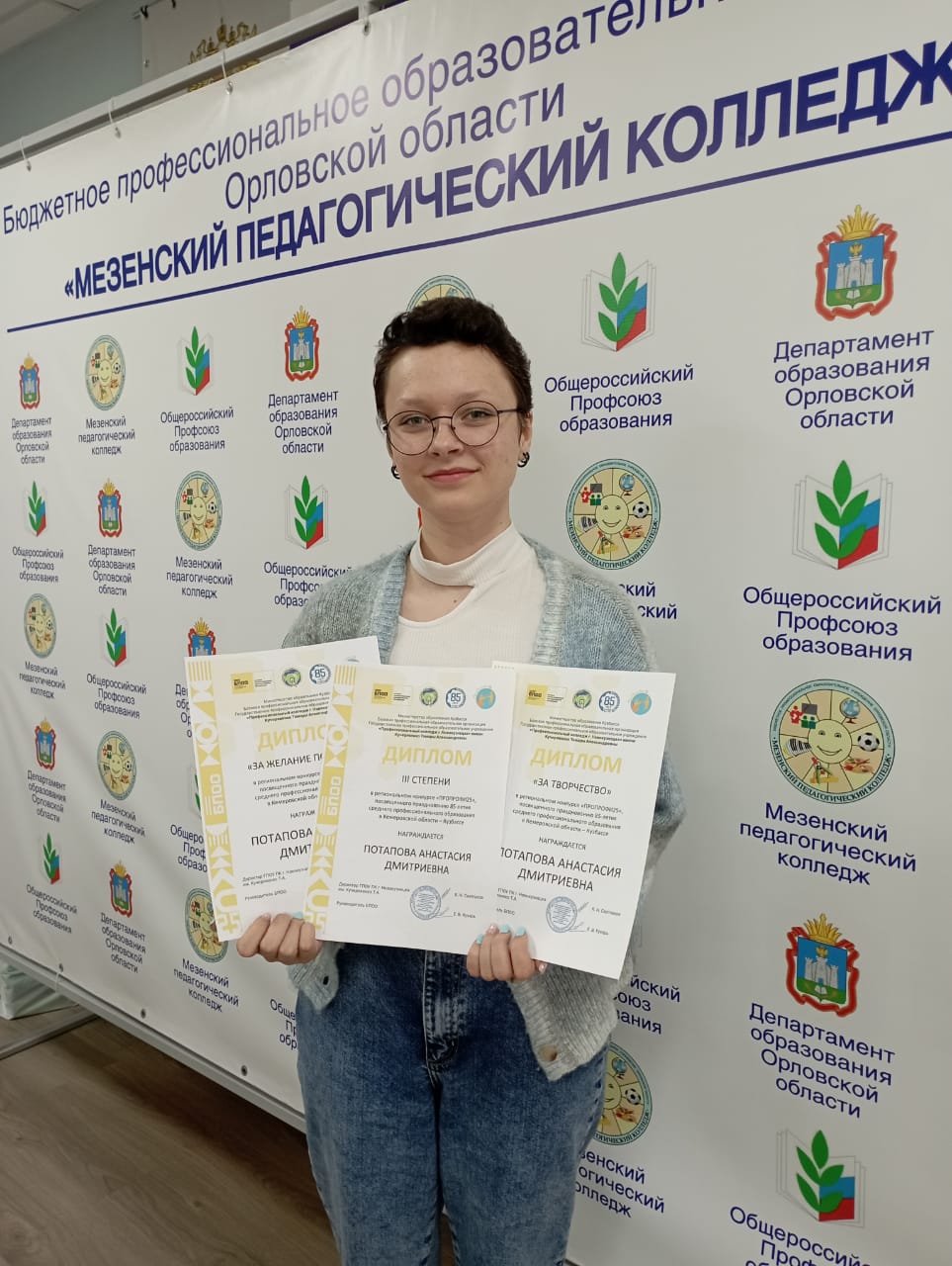 Поздравляем студентку 1 курса специальности «Коррекционная педагогика в начальном образовании» Потапову Анастасию – победителя межрегионального конкурса поздравительных открыток «ПроПрофи25», приуроченного к 85-летию системы среднего профессионального образования России, проведенного на базе БПОО Государственного профессионального образовательного учреждения «Профессиональный колледж г. Новокузнецка»