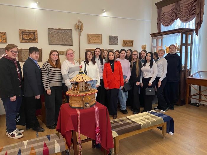 6 февраля 2026 года студенты 2 курса специальности 44.02.02 «Преподавание в начальных классах» БПОУ ОО «Мезенский педагогический колледж» совместно с классным руководителем Алимовой Е.О., в рамках реализации проекта «Пушкинская карта», посетили выставочную экспозицию музея им.И.С.Тургенева «Резная сказка».