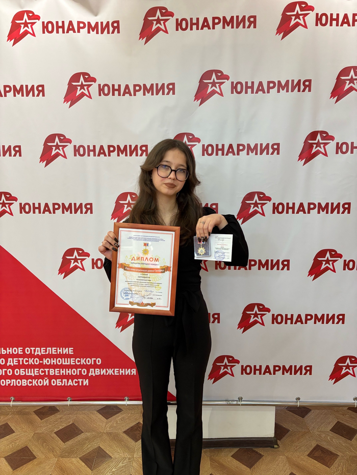 Поздравляем студентку 1 курса специальности «Физическая культура» Полномочных Киру с победой в ежегодном областном конкурсе «Лидер военно-патриотического движения Орловщины», награждение по итогам которого прошло 5 декабря, во Дворце пионеров и школьников им. Ю.А. Гагарина, в рамках торжественного мероприятия, посвящённого Дню Героев Отечества.