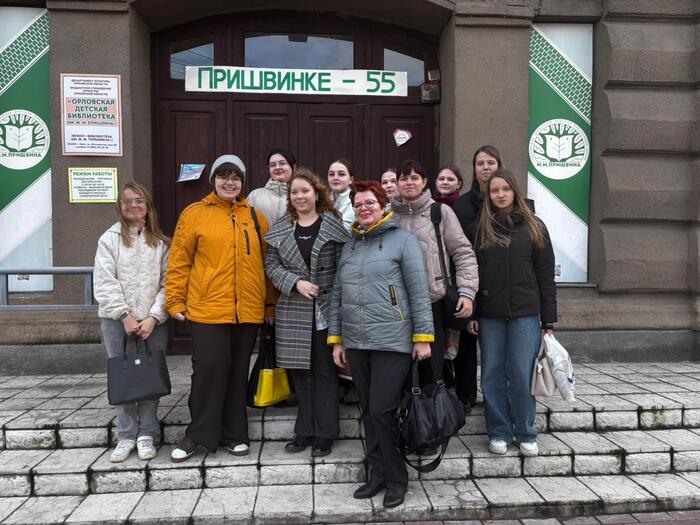 24 октября 2025 года студенты 25 и 32 групп (классные руководители Тюнина Л.А. и Филина Е.Д.) БПОУ ОО «Мезенский педагогический колледж» с использованием «Пушкинской карты» посетили интеллектуальный литературно-кинематографический квиз в Орловской детской библиотеке им. М.М.Пришвина.