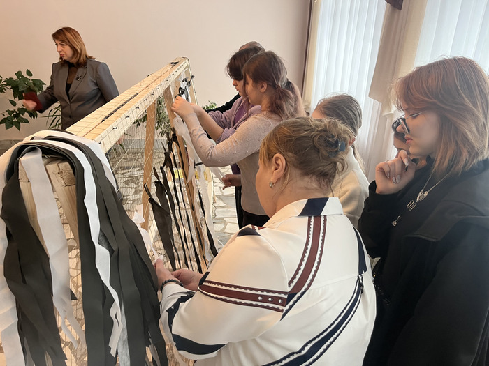 Преподаватели, классные руководители, педагоги дополнительного образования вместе со студентами освоили технику плетения маскировочных сетей методом «G» и все вместе сплели сеть, которая будет передана участникам специальной военной операции.