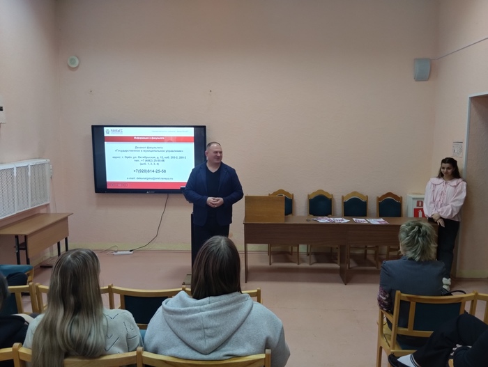 20марта 2026 года состоялась встреча студентов выпускного курса с представителями Среднерусского института управления – филиала РАНХиГС. Студенты познакомились с образовательной организацией: руководством, педагогическим составом института, его материально-технической базой, с историей и традициями. Специалисты вузов познакомили студентов выпускных групп с направлениями подготовки, правилами поступления, рассказали о студенческой жизни и пригласили на День открытых дверей.