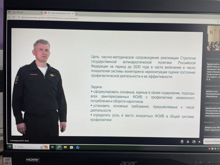 30 октября 2025 года Ахромеева С. Л., заместитель директора по воспитательной работе и социальным вопросам, и специалисты психолого-педагогической службы приняли участие в онлайн-совещании по внедрению Межведомственного стандарта антинаркотической профилактической деятельности в Орловской области.