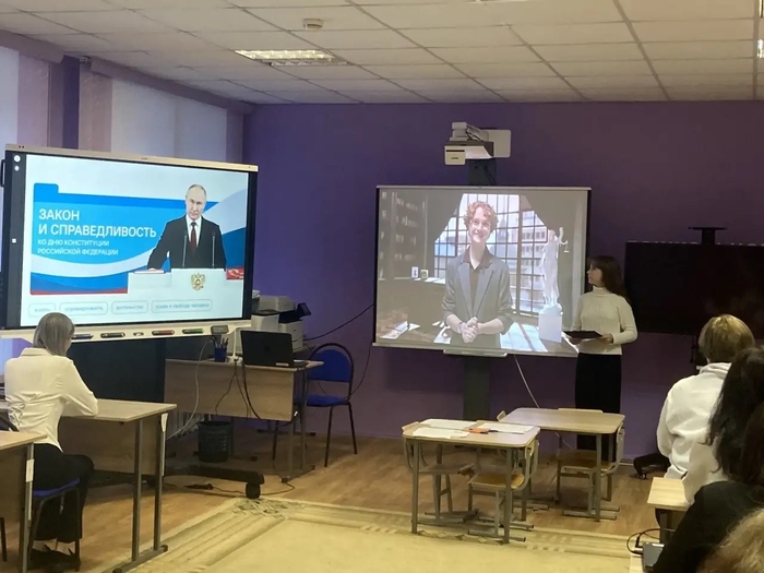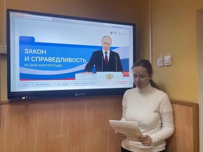 15 декабря 2025 года во всех учебных группах 1-4 курсов БПОУ ОО «Мезенский педагогический колледж» проведено внеурочное занятие «Разговоры о важном» по теме: «Закон и справедливость. Ко Дню Конституции Российской Федерации».