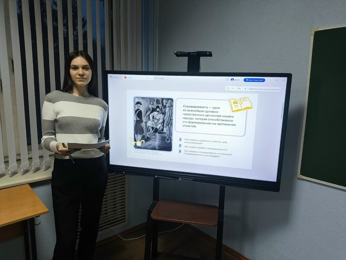Занятие было выстроено как многоуровневый диалог, направленный на формирование у обучающихся целостного понимания права как отражения исторического пути и нравственных идеалов общества. Студенты проследили путь закона и справедливости в России – от древнего свода «Русская Правда» до современной Конституции. Обсудили, почему равенство прав – основа справедливого общества, и как «весы справедливости» балансируют между правами и обязанностями каждого из нас.