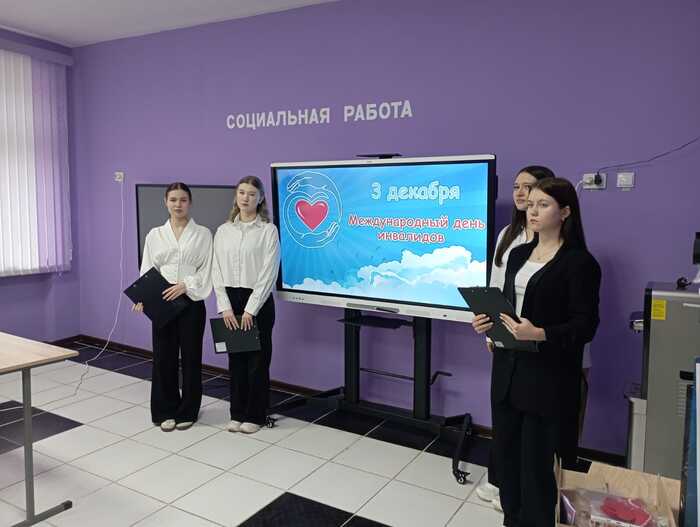 3 декабря 2025 г., студенты 2 курса специальностей 44.02.05 Коррекционная педагогика в начальном и образовании и 44.02.01 Дошкольное образование БПОУ ОО «Мезенский педагогический колледж» посетили мероприятие «… И мир станет добрее!», приуроченное к Международному дню инвалидов, которое было организовано сотрудниками Центра инклюзивного профессионального образования.