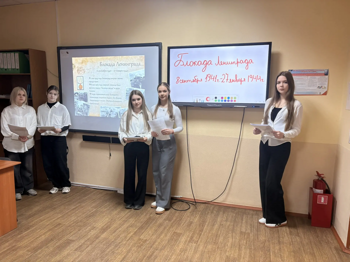 28 января 2026 г. в БПОУ ОО «Мезенский педагогический колледж» в рамках урока истории студенты 12 группы специальности 44.02.05 Коррекционная педагогика в начальном образовании совместно с преподавателем Борисовой Н. А. провели мероприятие, посвященное снятию Блокады Ленинграда.