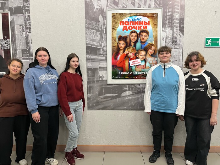 31 октября 2025 года студенты 26 группы, обучающиеся по направлению подготовки 39.02.01 Социальная работа, совместно с классным руководителем Гришкиной Д. А. побывали в кино на фильме «Папины дочки. Мама вернулась».
