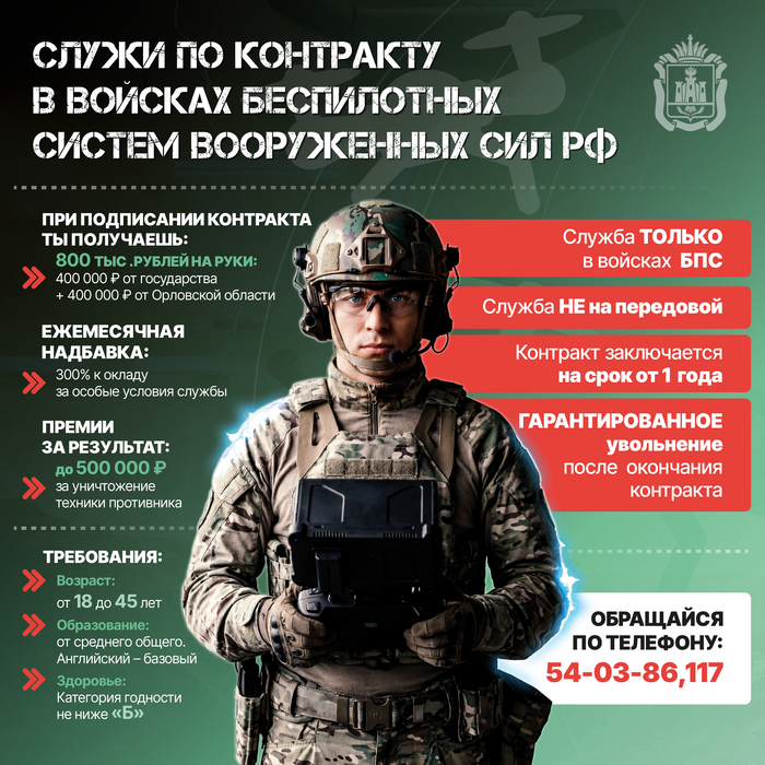 ❗️❗️❗️СЛУЖБА ПО КОНТРАКТУ В ВОЙСКАХ БЕСПИЛОТНЫХ СИСТЕМ ВООРУЖЕНИЯ: ОБ УСЛОВИЯХ, ГАРАНТИЯХ И ПЕРСПЕКТИВАХ! Контрактная служба – это возможность проявить свою гражданскую позицию, стать частью Вооруженных Сил Российской Федерации, которые ведут борьбу с нацизмом в рамках специальной военной операции.